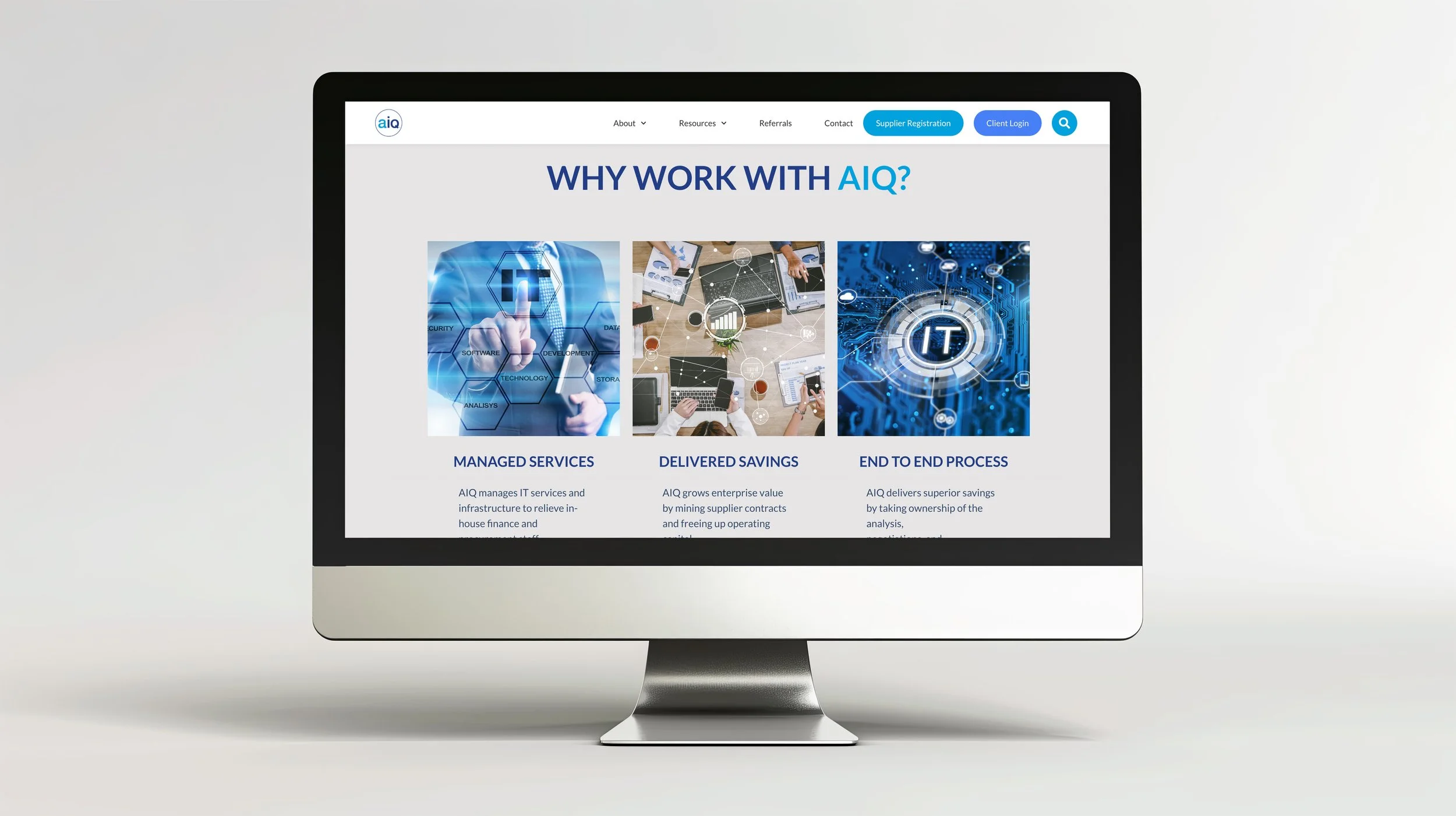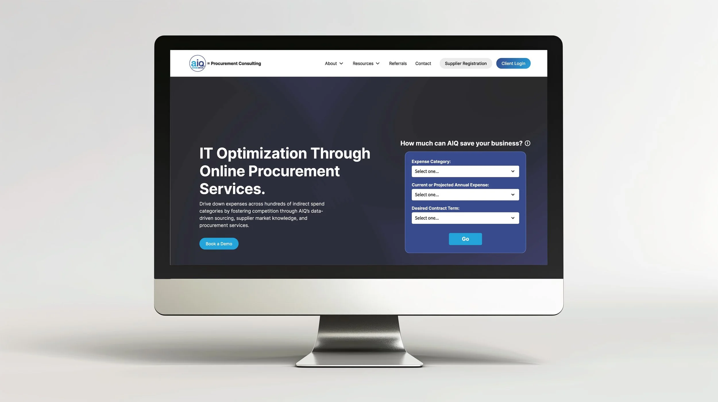 AIQ is a data-driven procurement platform helping enterprises reduce IT spend through AI-powered sourcing and supplier insights. The homepage redesign aimed to modernize the brand, build credibility, and drive demo conversions.